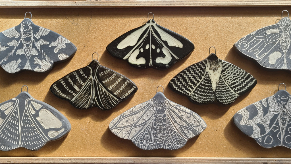 A limited edition run of hand carved ceramic tiles inspired by moths and their textures